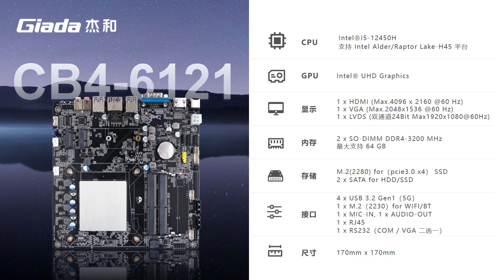 针对客户的办公及图形处理性能需求,凯发集团选用了搭载Intel 12代Core i5-12450H处理器的主板,该处理器支采用Intel 7制程工艺,8核12线程设计,最大加速功耗高达95W,以及12M高速缓存,能为用户提供超强的计算能力和响应速度。并且i5-12450H处理器自带的48个EU单元的UHD核芯显卡,可实现流畅的影音娱乐和高画质游戏体验。