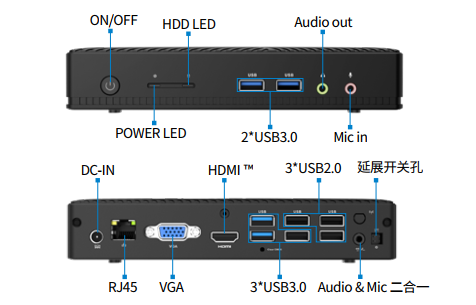 云终端Y-BOX P3主板上配备了 1个 M.2 插槽,支持两种尺寸(2242和2280)的NVMe协议PCIe固态硬盘,支持PCIE3.0、PCIE4.0。机身共配置了3个USB3.2 Gen2接口和3 个 USB2.0接口,以及1个 USB3.2 Gen1 Type-C,2个USB3.2 Gen1接口,满足用户更多应用拓展。