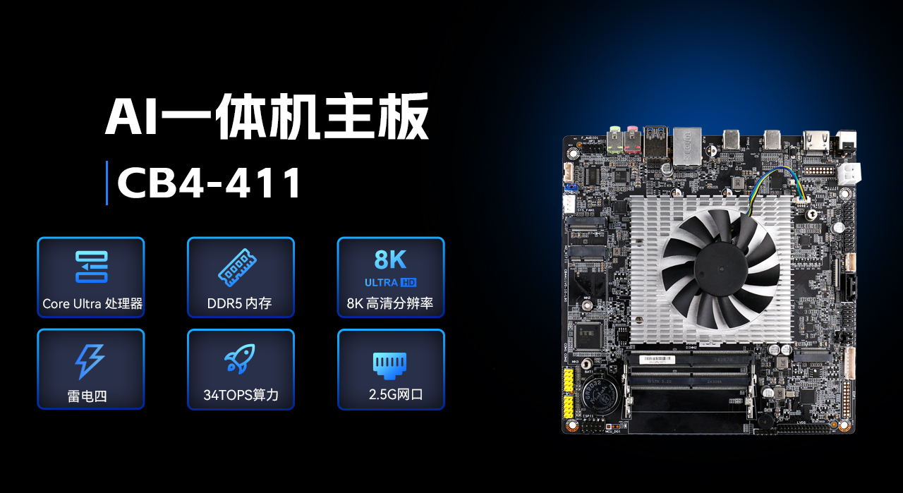 基于一体机行业需求,K8·凯发科技推出一体机主板CB4-411,搭载 Intel® Meteor Lake 平台处理器,用户可以直接在电脑上处理AI工作,一体机本身集成了显示器、主机和其他硬件组件,设计简洁且节省空间,在办公、家庭娱乐、数字创作等多种场景下,CB4-411可以助力一体机加速图像识别、图形渲染、视频编辑等任务。