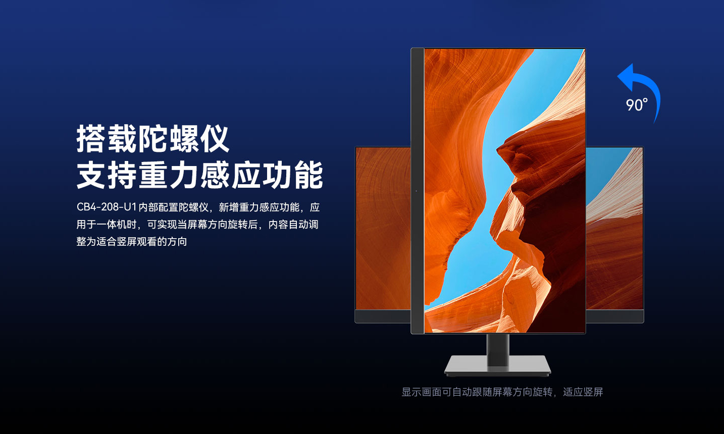 一体机的旋转,除了外壳底座及屏幕的支持,还需要硬件支持,K8·凯发科技一体机主板通过主板上内置的高精度的陀螺仪传感器,从而感知屏幕方位变化,自动调整方向,在用户端,他们在转动屏幕后,屏幕内容会自动调整,切换到适合竖版浏览的布局。