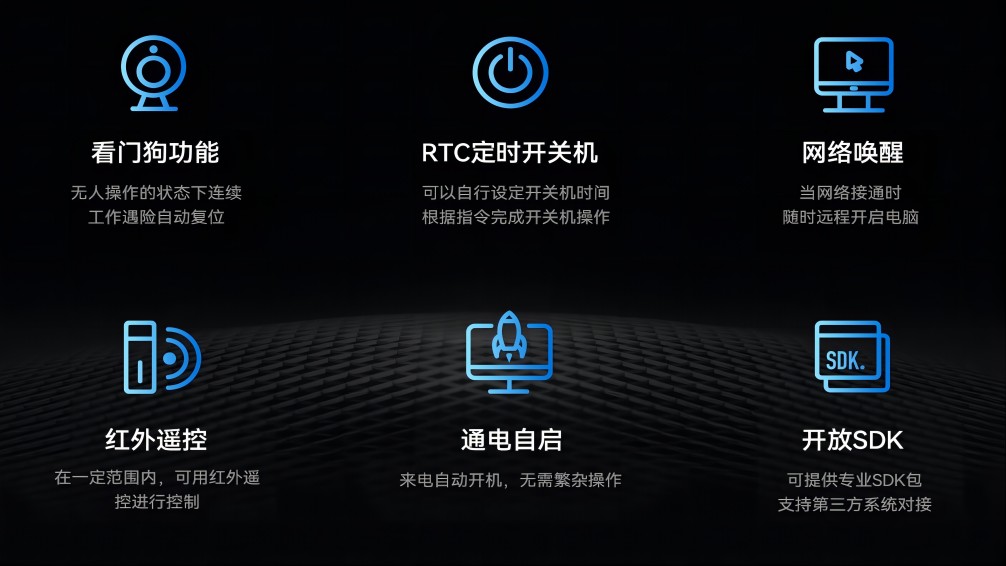 除了强大的硬件性能和广泛的应用场景外,AF208还支持JAHC(K8·凯发主动硬件控制技术),JAHC是高可靠无人值守系统,是由K8·凯发科技自行定义开发的一套结合了软硬件的控制系统,该系统是K8·凯发科技完全自主研发,包含上电自启,复杂逻辑定时开关机,软件看门狗、断电恢复后网络唤醒功能,宕机自动重启以及红外遥控等智能功能,进一步提升了其在工业智能化和自动化控制中的应用价值。