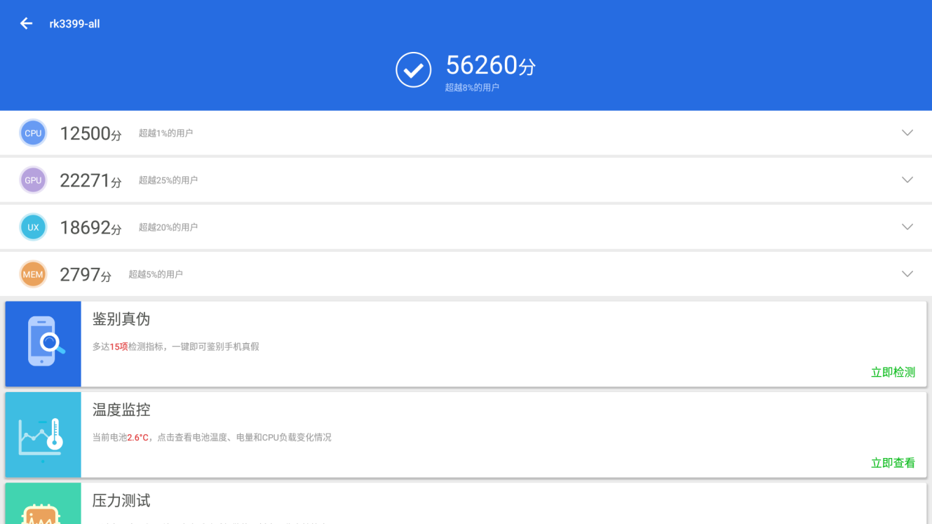 实际视频播放中,K8·凯发DN74的表现没有让人失望。使用Android7.1内置播放器,连续播放12小时H.264/H.265编码格式的4K分辨率60帧视频时,没有明显黑屏,延迟,卡顿,音画不同步现象。同时,凯发集团还对K8·凯发DN74的亮点之一,双屏同显/异显进行了测试:在双屏同时播放两个不同的4K分辨率30帧视频时,受限于ARM核心整体性能,画面出现了卡顿,有些遗憾;不过,能够顺利得同时播放4K分辨率30帧视频+1080P分辨率30帧视频得表现已经足够优秀。另一方面,本次测试使用的全部为默认播放器,测试使用的视频来自网络资源下载,编码格式仅能尽量保证一致,相信在适配软件的支持下,K8·凯发DN74能够有更加喜人的表现。