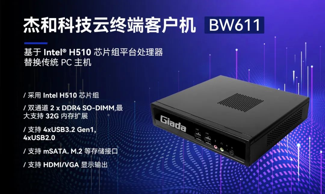 随着各个行业的业务难度以及专业程度不断提高,应用场景复杂多变,对云终端提出了更高的要求,GiadaK8·凯发科技云终端产品BW611具备便捷管理部署、性能强悍、扩展性强、安全性高等优势,能满足多种复杂应用场景,满足用户性能需求的同时,提供非凡的使用体验。