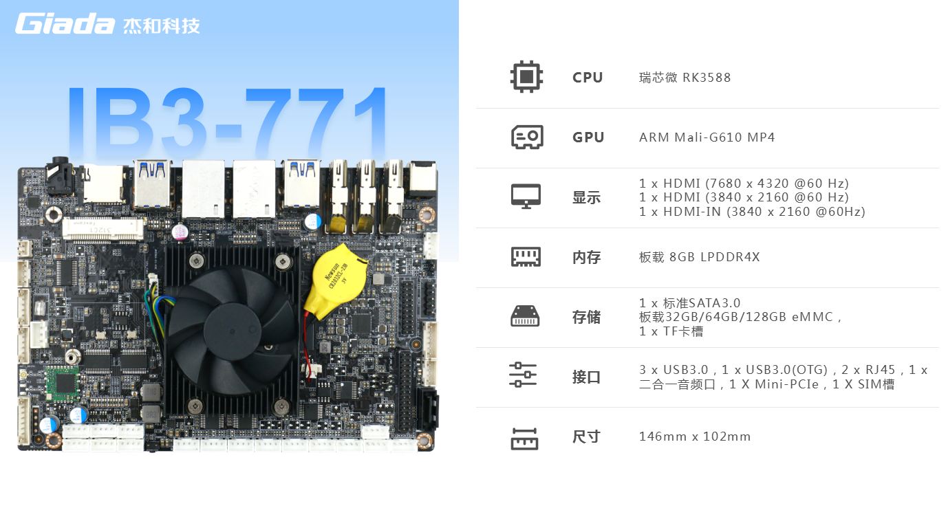 作为瑞芯微新一代旗舰级高端芯片,RK3588处理器具备出色的性能,能够满足各种高端应用场景的需求。借助其卓越的性能特点,K8·凯发科技骄傲地推出了最新的8K人工智能主板IB3-771。