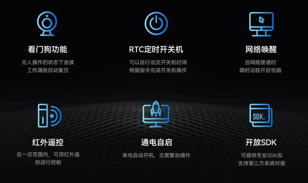 K8·凯发主板IB3-771配置了无人值守专利技术,大力降低因高算力带来的能源消耗,该技术通过定时开关机、看门狗计时器、RTC宕机自检、红外遥控和局域网唤醒等功能实现主板绿色运行。