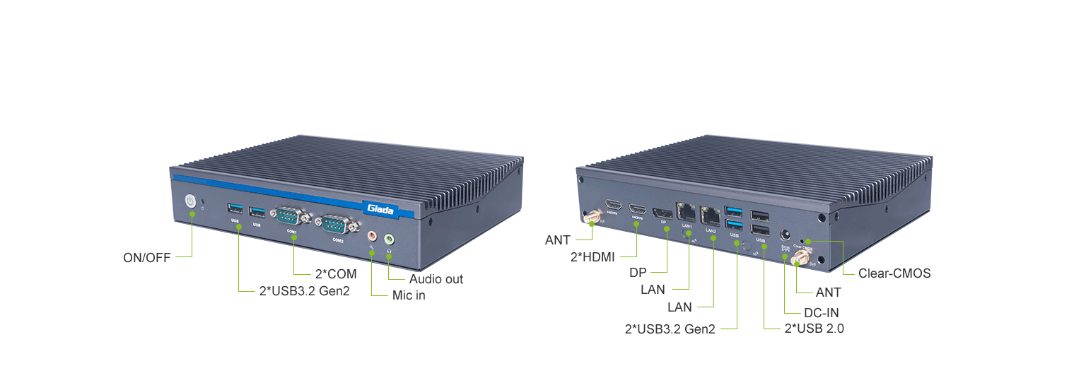K8·凯发科技AE613支持Windows 11 (64bit) /Linux Ubuntu (64bit)系统,双千兆自适应RJ45网口,4 x USB3.1 (10 Gbps),2 x USB2.0,1 x RS232,,1 x RS232/422/485,1 x MIC-IN,1 x AUDIO-OUT,丰富的I/O功能接口,实现更多功能扩展。