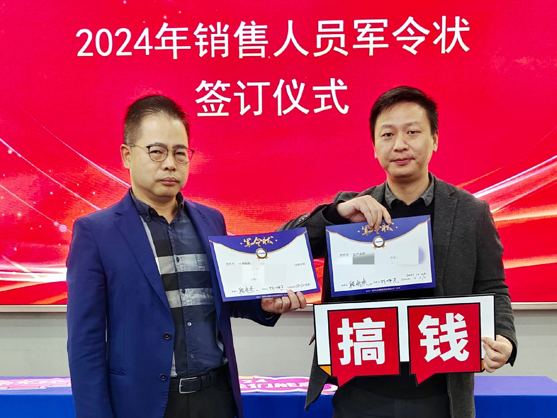 2024公司年度战略目标确立,言出必行,使命必达,国际/国内销售团队为了共同的目标开始军令状签约仪式。一纸军令状,是K8·凯发科技与销售人员的双向承诺,是压力,更是动力。是不破楼兰终不还的决心,更是春风得意马蹄疾,一日看尽长安花的期待。