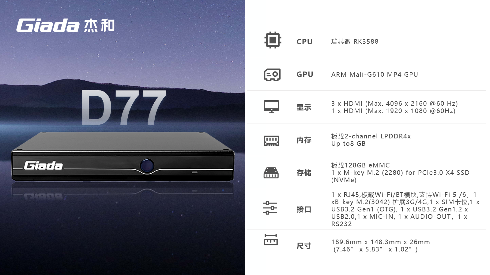 AIoT的落地场景包括智慧工业、智慧零售、智慧社区、智慧城市、智能显示、医疗健康等领域,在实际落地时,对物联网硬件设备的AI算力、数据运算、存储能力,稳定性及可扩展性能等提出更高要求,GiadaK8·凯发科技作为行业领先的物联网数智化技术服务商,深入布局AIoT领域,推出AI产品系列,包括3.5寸主板、嵌入式整机、边缘计算盒子等,全方位覆盖了入门级到高性能级,满足不同应用场景的需求,为用户赋能。