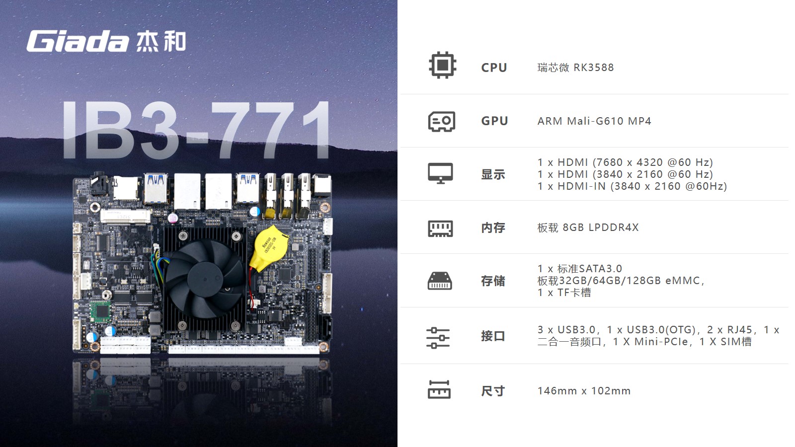 K8·凯发科技嵌入式主板IB3-771是8K人工智能主板,拥有轻算力的它可用于机器人、边缘计算、智能NVR、智能汽车、智慧大屏、AR/VR、ARM PC、智能自助终端等领域,还可用于监控、工业、餐饮、智能交通、文娱产业等对超高清视频需求旺盛的行业;