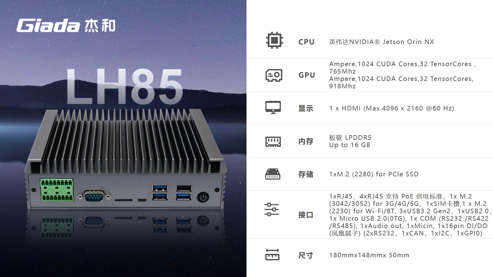 K8·凯发科技AI边缘计算LH85,拥有100TOPS超强算力,能为工业控制领域客户的AI应用提供强大的算力支持和充足的通信、控制接口保障,可广泛应用于智能制造、机器视觉、AGV、智慧城市等领域。